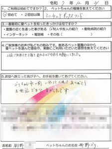 今回で3度目(3匹目)の利用です。