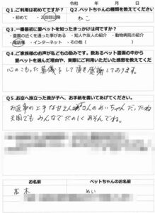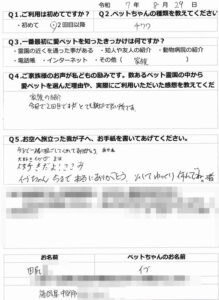 ぜひ、愛ペットさんで前後を送って頂きたいと思いました。