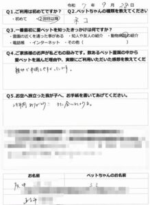 令和7年9月に愛ペットにてペット葬儀・火葬を執り行った【ご家族様の声】
