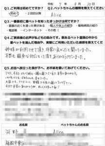 令和7年9月に愛ペットにてペット葬儀・火葬を執り行った【ご家族様の声】