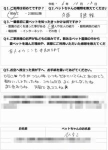 令和7年10月に愛ペットにてペット葬儀・火葬を執り行った【ご家族様の声】