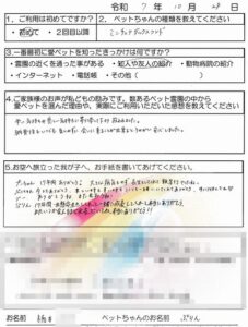 令和7年10月に愛ペットにてペット葬儀・火葬を執り行った【ご家族様の声】