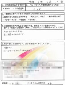 令和7年12月に愛ペットにてペット葬儀・火葬を執り行った【ご家族様の声】