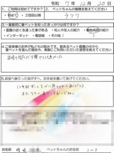 令和7年12月に愛ペットにてペット葬儀・火葬を執り行った【ご家族様の声】