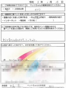 令和8年2月に愛ペットにてペット葬儀・火葬を執り行った【ご家族様の声】