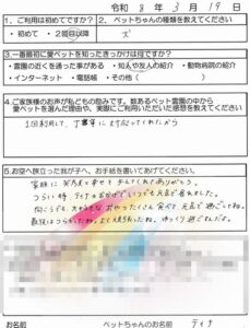令和8年3月に愛ペットにてペット葬儀・火葬を執り行った【ご家族様の声】
